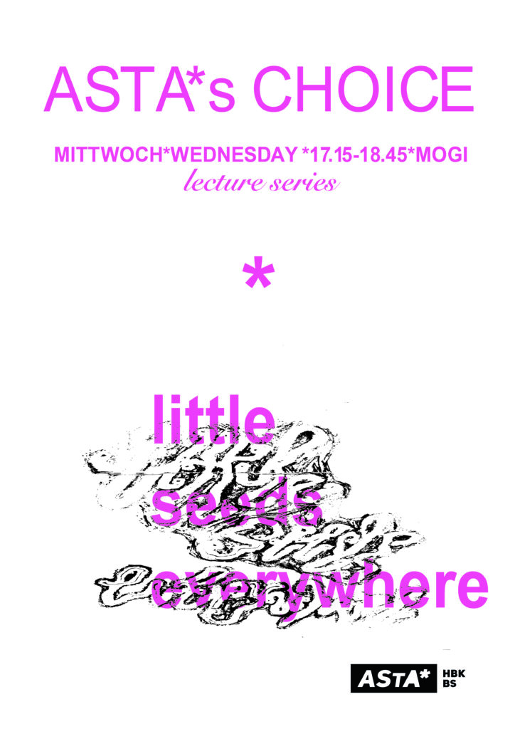 Das Format AStA’s Choice ist eine Veranstaltung, die von Studierenden für Studierende angeboten wird. Das Seminar lässt sich im Professionalisierungsbereich im Modul Wissenskulturen anrechnen. Dieses Semester wird das AStAs Choice von Lydia Plinke, Sonia Neuer und Benno Hauswaldt organisiert. Bei Interesse, im nächsten Jahr selbst ein Seminar zu organisieren, meldet euch gerne beim AStA.–––––––––AStA’s Choice: Lecture Series – Little Seeds Everywhere