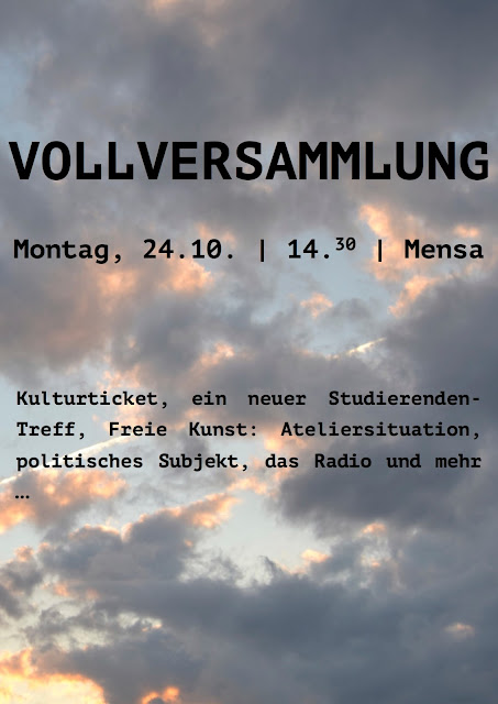 Hinweis: Es gilt eine allgemeine Ausfallempfehlung, d.h. solltet ihr einen Kurs haben, dürft ihr diesem fern bleiben, sofern ihr zur Vollversammlung kommt.